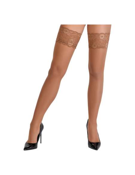 Cottelli – Čipkované a kvetinové pančuchy po stehná (telová farba)