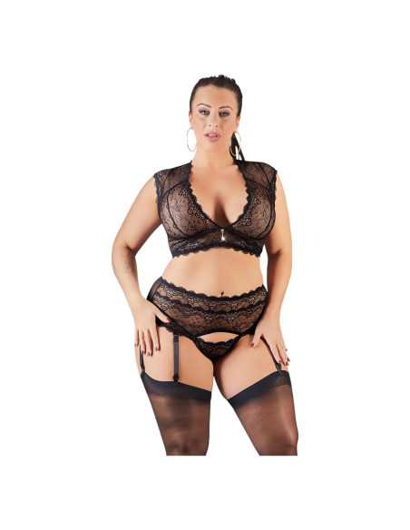 Cottelli Plus Size – čipkovaná sada s kamienkami (čierna)