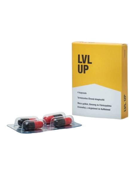 4-kusový balenie LVL UP prírodného doplnku stravy pre mužov, ktorý môže podporiť správnu funkciu hormonálneho systému, prostaty, srdca a cievneho systému, zlepšiť sexuálnu túžbu a zvýšiť sexuálny výkon.