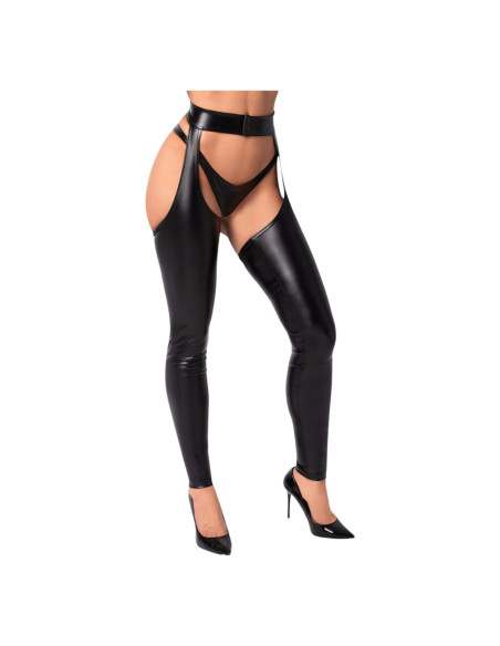Noir – lesklé pančuchy s chapsami (čierne)