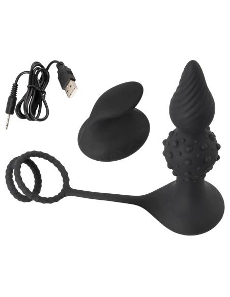 Rebel 2v1 – nabíjací anál vibrátor s rádio a erekčným krúžkom (čierny)