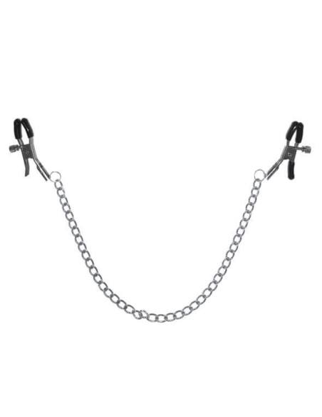 S&M – klipsy na bradavky s reťazou (1 pár) Unisex klipsy na bradavky s reťazou, ktorá je bez niklu (antialergénna), ti umožnia získať prevahu nad tvojím submisívnym partnerom. Ak neposlúcha, jednoducho pritiahnite klipsy na bradavkách alebo, ak to nestačí, veď ho cez reťaz!Obsah setu: 2 ks (1 pár) klipsov s reťazou Prečo sú skvelé? Vysokokvalitný, odolný materiál Klipsy