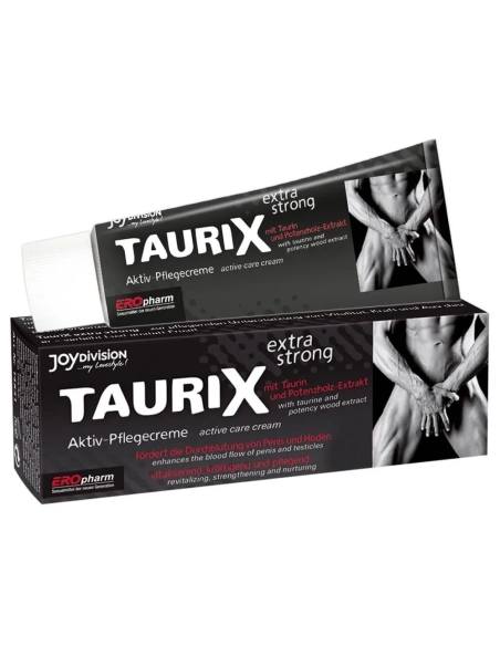 TAURIX Extra Strong je špeciálny krém na aktiváciu a starostlivosť, ktorý bol vytvorený pre mužov. Má regeneračné a stimulačné účinky, vďaka ginsengu, taurínu a Muira Puama (strom potencie). Je ideálnou voľbou pre intímne masáže, či už na sólo starostlivosť alebo partnerské potešenie. Regeneračná formula môže pomôcť obnoviť pokožku penisu, zlepšuje krvný obeh