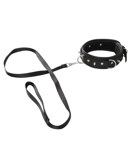 Vegán Fetish – čierny obojok s remienkom a cvokmi