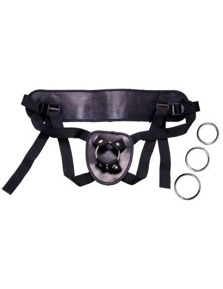 Univerzálny, ideálny pre ženy aj mužov, špeciálne určený pre pripínateľné hračky, vyrobený z čiernej umelej kože s pevnými, výborne odolnými popruhmi, ktoré sa dajú nastaviť. Bedrový popruh sa dá nastaviť do maximálneho obvodu 155 cm, zatiaľ čo stehenné popruhy až na 48 cm.